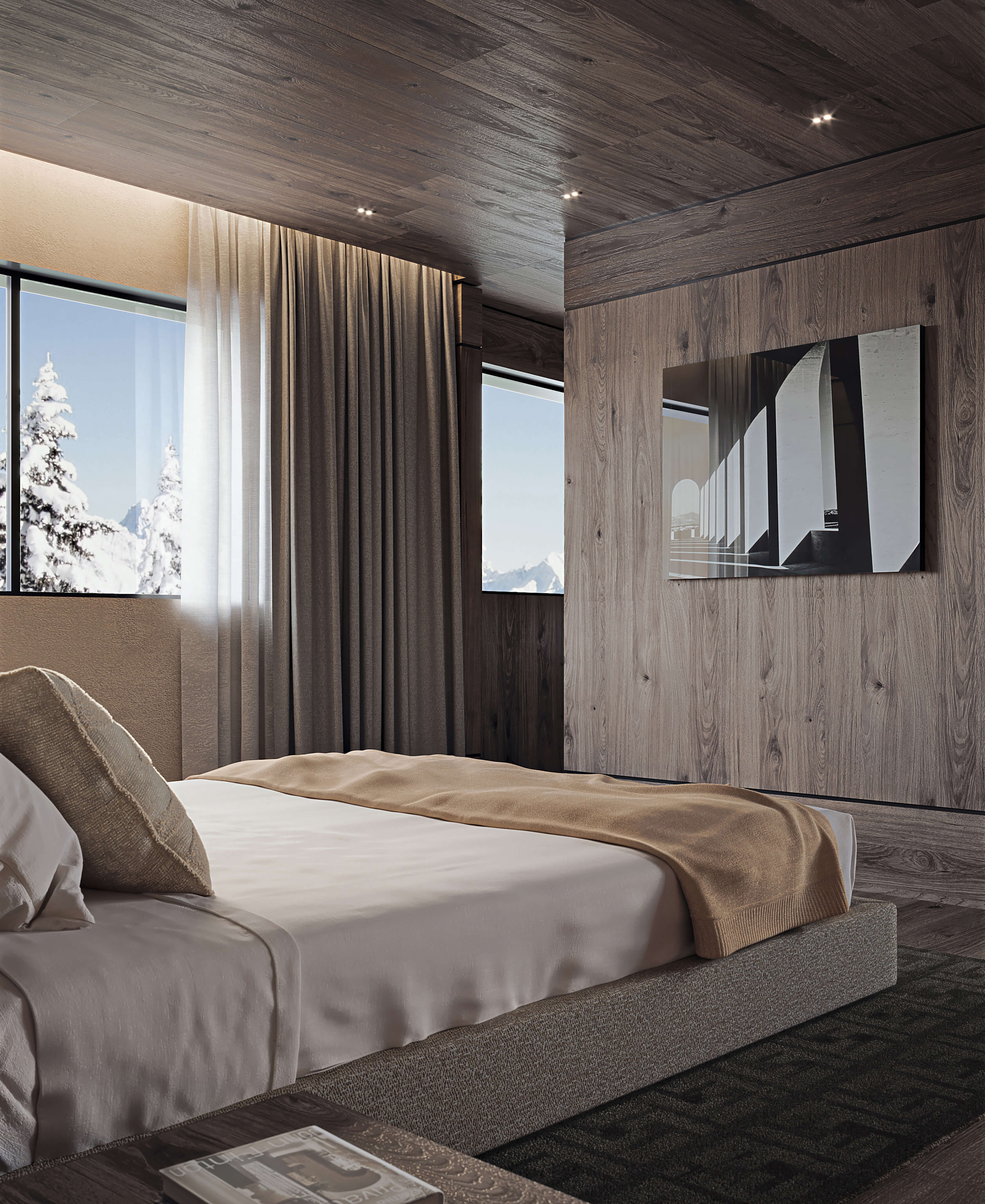 Mirroring the textural intricacies of bark and snow patterns, meticulously chosen fabrics and the use of indigenous materials offer a sense of both familiarity and discovery throughout the project’s elemental makeup, embracing the surrounding forest as its muse. Contemporary yet warm, it’s this marriage of classic alpine wonders and modern accommodations that result in a vast array of uniquely elevated and idiosyncratic creature comforts for residents and guests alike. The residences, varying in size, exude warmth and hospitality. Each space has been carefully designed to establish a profound connection with the natural environment, accentuating the majestic views offered by Crans-Montana.